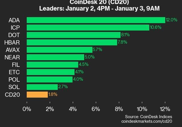 9am CoinDesk 20 Update for 2025-01-03: leaders chart