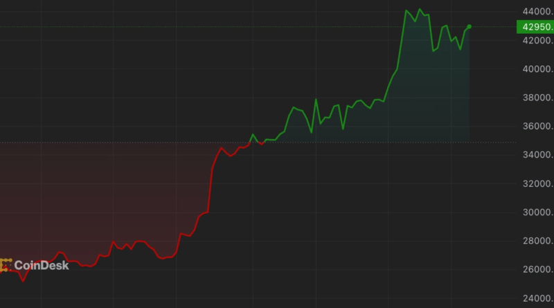 Altcoins led gains on Tuesday, with NEAR Protocol NEAR climbing 15% and Avalanche AVAX and Solana SOL adding 8% over the past 24 hours, while bitcoin (BTC) rose by around 5%. After reaching a daily low of $40,000 on Monday, bitcoin has picked up and is now trading around $43,000. Traders are looking to the next levels for the cryptocurrency, with Matteo Bottacini, a trader at Crypto Finance AG, seeing a break through $45,000 occurring only if there’s unexpected news or an equities rally. “A BTC breakthrough above $45k should be attributed to either unexpected positive news or an equity rally,” said Bottacini. “Conversely, a dip below $41K, in the absence of negative news or a risk-off sentiment in traditional markets, presents a buying opportunity and is indicative of a potential short squeeze.”